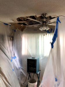 A rusty pipe had slowly been leaking into the upstairs bathroom floor causing the growth of toxic mold. The leak would eventually soak the ceiling and walls of our downstairs living room, and the ceiling’s collapse would expose the entire apartment to the spores of toxic molds like Stachybotry, dust and debris.