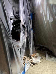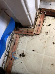 Coastline workers arrived ill-equipped to handle the mold and each told us to vacate the apartment; that it was unlivable. Plumbers left our bathroom vanity and floor torn open to exposed upturned nails as an ever-present obstacle in accessing the toilet and shower. And another Coastline worker dropped off an obsolete dehumidifier and then gave us diametrically opposed instructions — leave this apartment immediately but also return twice daily to empty the dehumidifier or it will overflow.